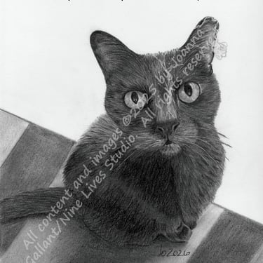 When complete, I use a workable fixative to protect the drawing from smudging/damage. (The image to the right is almost done...just need to add kitty whiskers!)